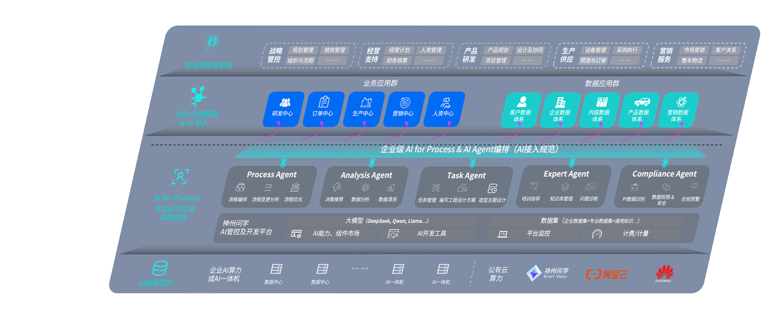端到端的一站式AI工作空间深度融合了从企业战略规划到日常经营的全流程业务板块,,,定向解决车企内部领域多、、部门多、、、、链条长、、、、场景碎片化等难题,,,,支持车企快速构建以AI为核心的生产力写作体系,,实现任务执行与AI能力的无缝集成与交互